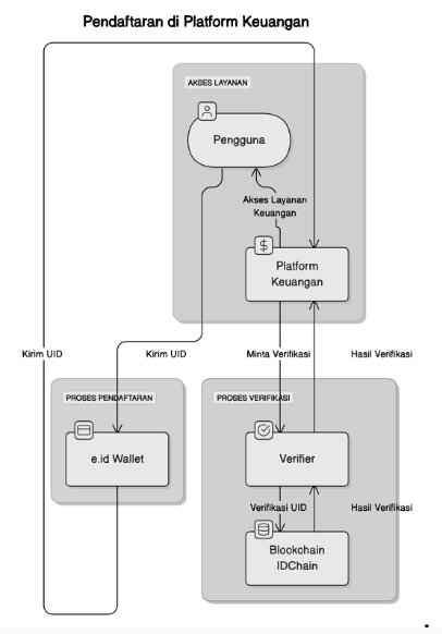 • e.id Wallet → Financial Platform: Users send their UID through the e.id Wallet to the financial platform for identity verification.